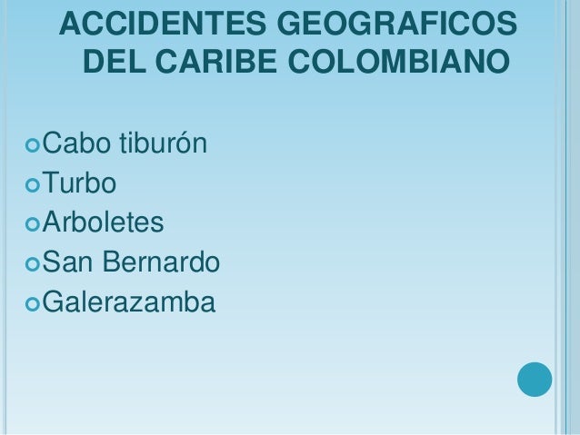 - 7. ACCIDENTES GEOGRAFICOS DEL CARIBE COLOMBIANOCabo tiburónTurboArboletesSan BernardoGalerazamba